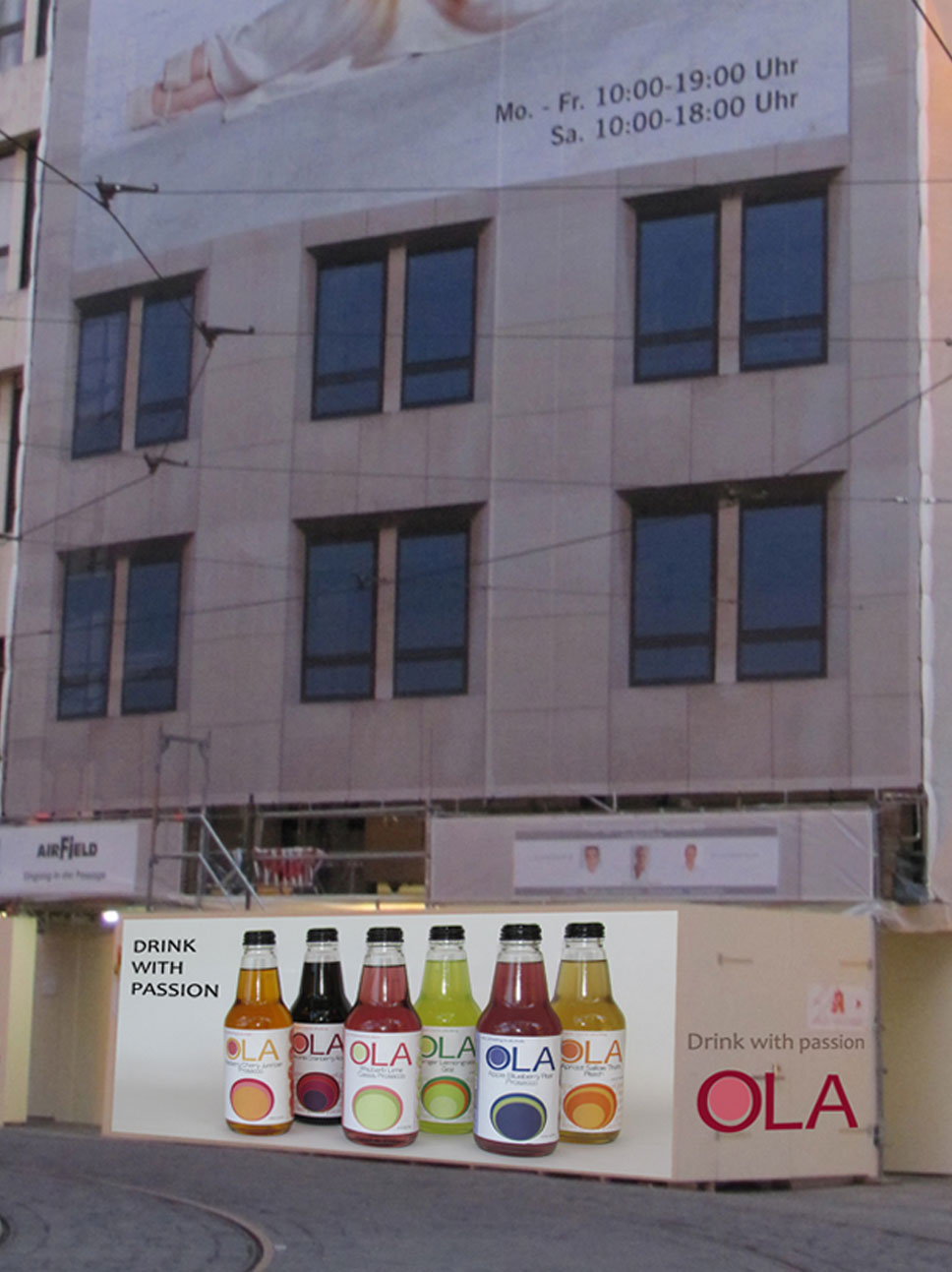 One is the billboard for the brand OLA Fruit Juices.